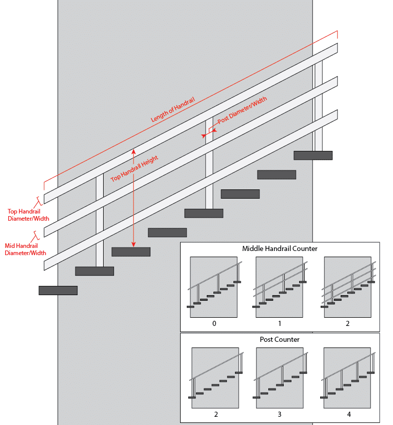 Dt = Top Handrail Diameter/Width = 2.375 in | 60.33 mm