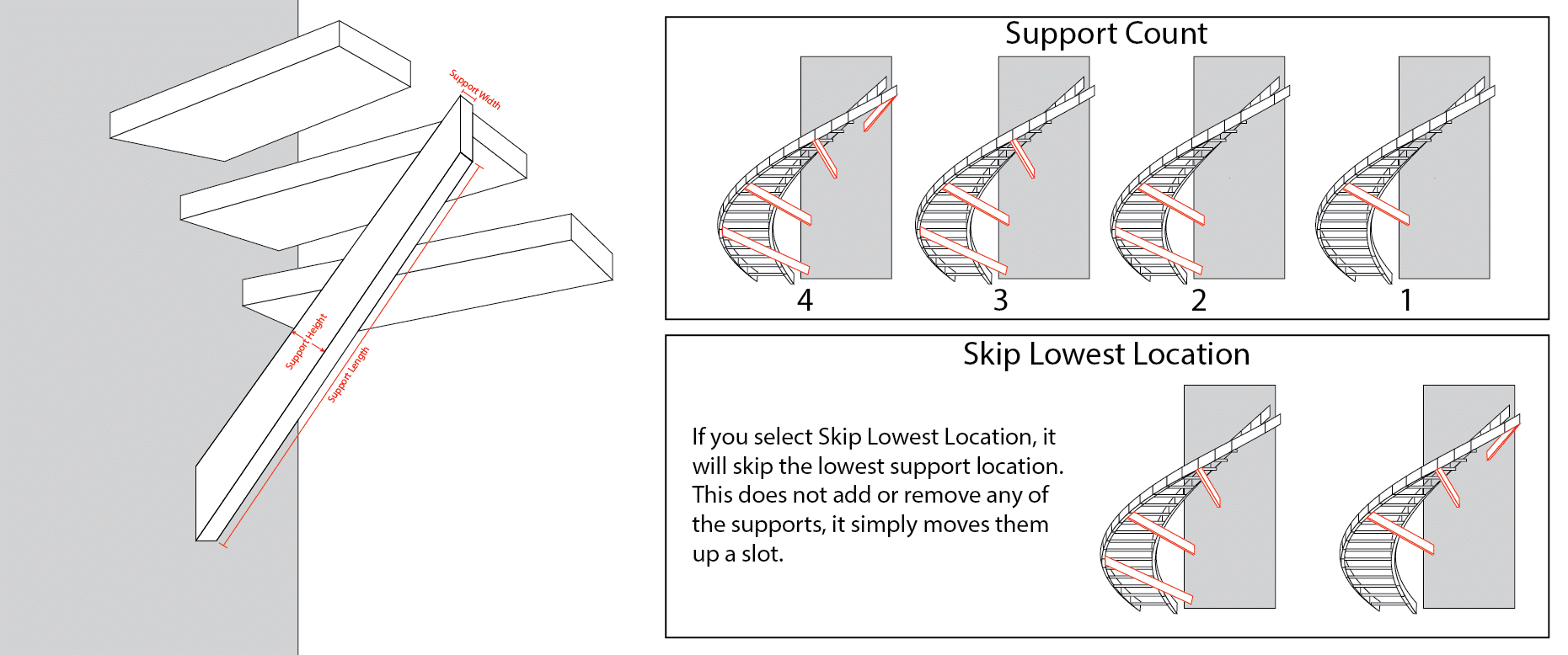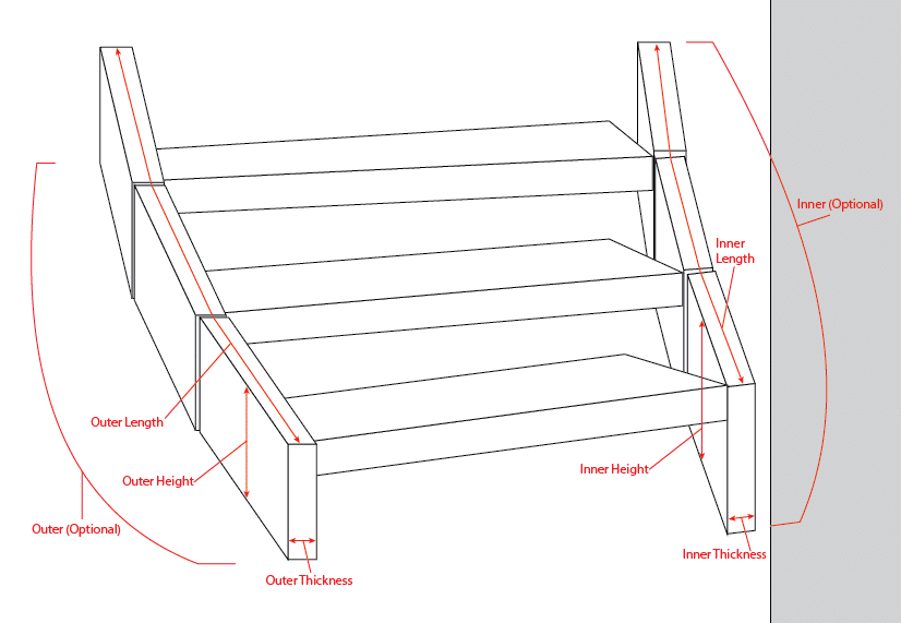 You can specify the Standoff (the distance between the stack and the stairs which will have an impact on the Weight and Wind Area.